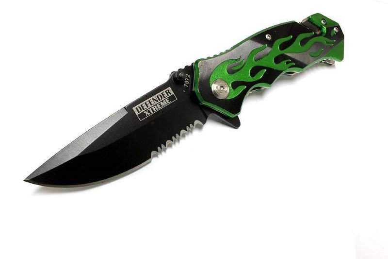4.75″ Flame Design Green Handle Black Blade Knife