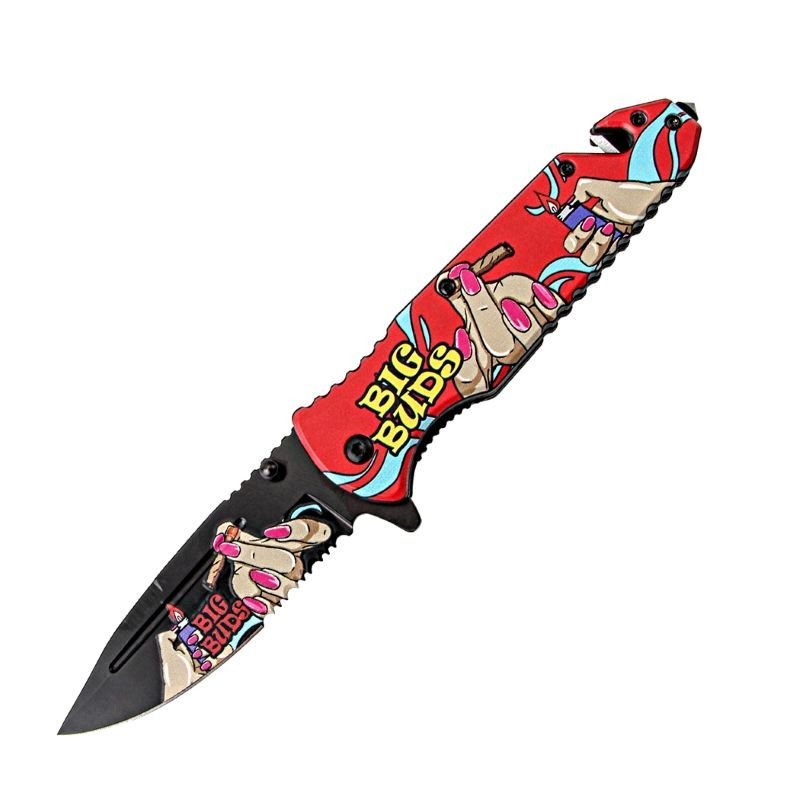 8.5″ Fingers Design Red Handle Spring Assisted Folding Knife W/ Belt Cutter