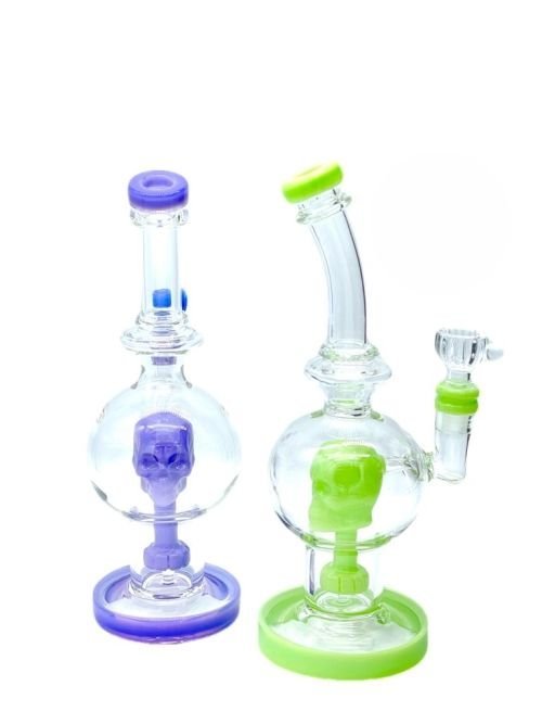 9in Bent Neck Orb Waterpipe With Skull Perc