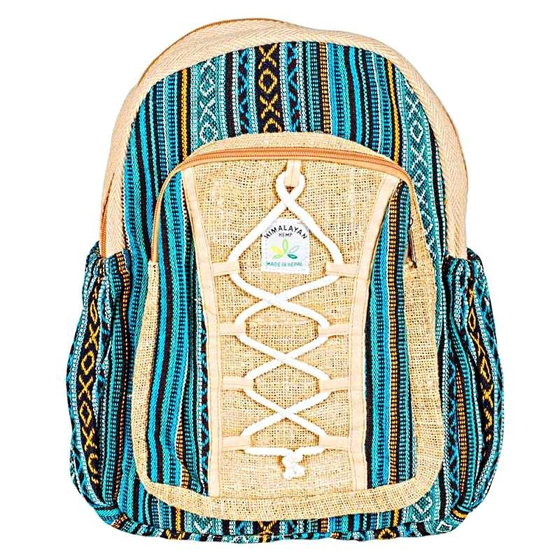 Blue Tones Hemp Backpack 10″ x 14″ W/ Front Zipper Pocket
