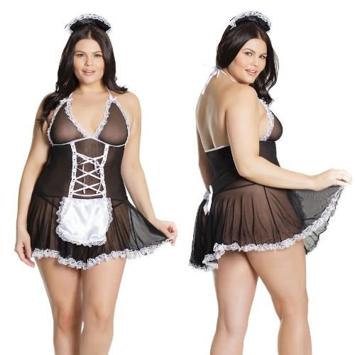 French Made Lingerie Baby Doll Black OSXL Costume