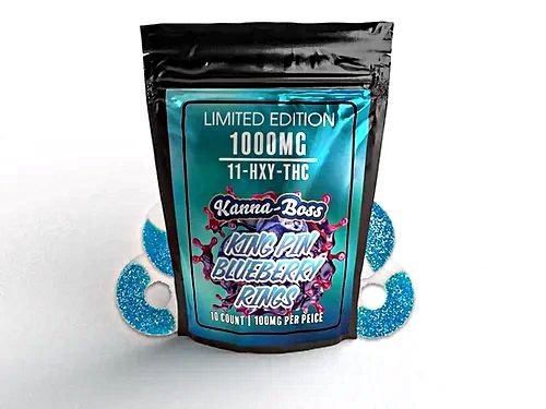 Kanna Boss 10ct Gummies 1000MG Pouch Hydroxy 11 Blueberry Rings