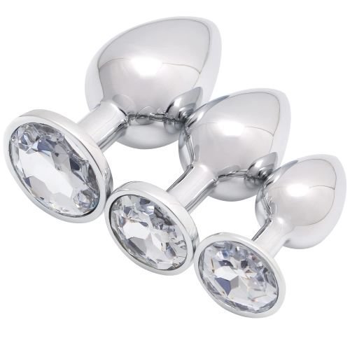 Ouch! Round Gem Metal Butt Plug Small Silver Diamond