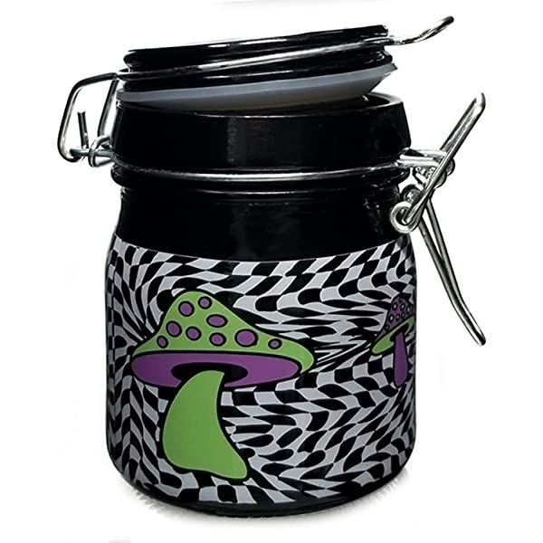 Stash Jar Large Trippy Mushroom W/Color Checkerboard